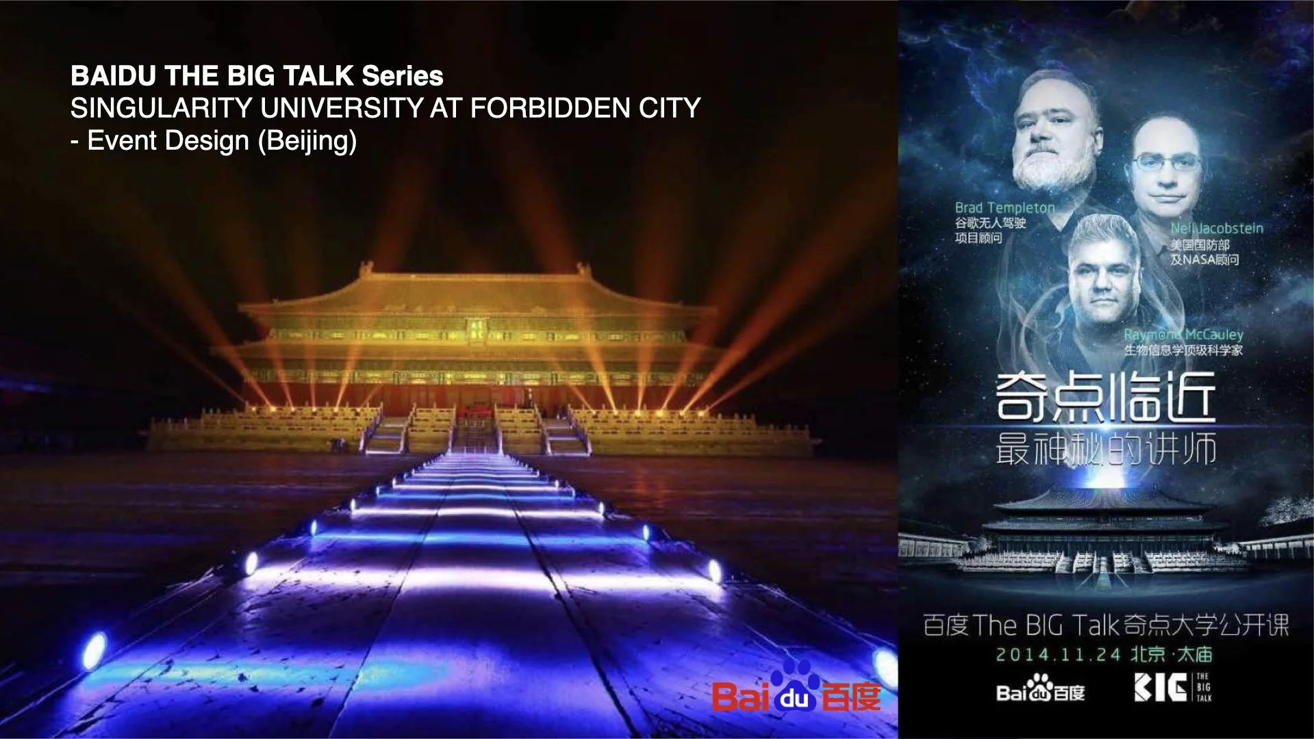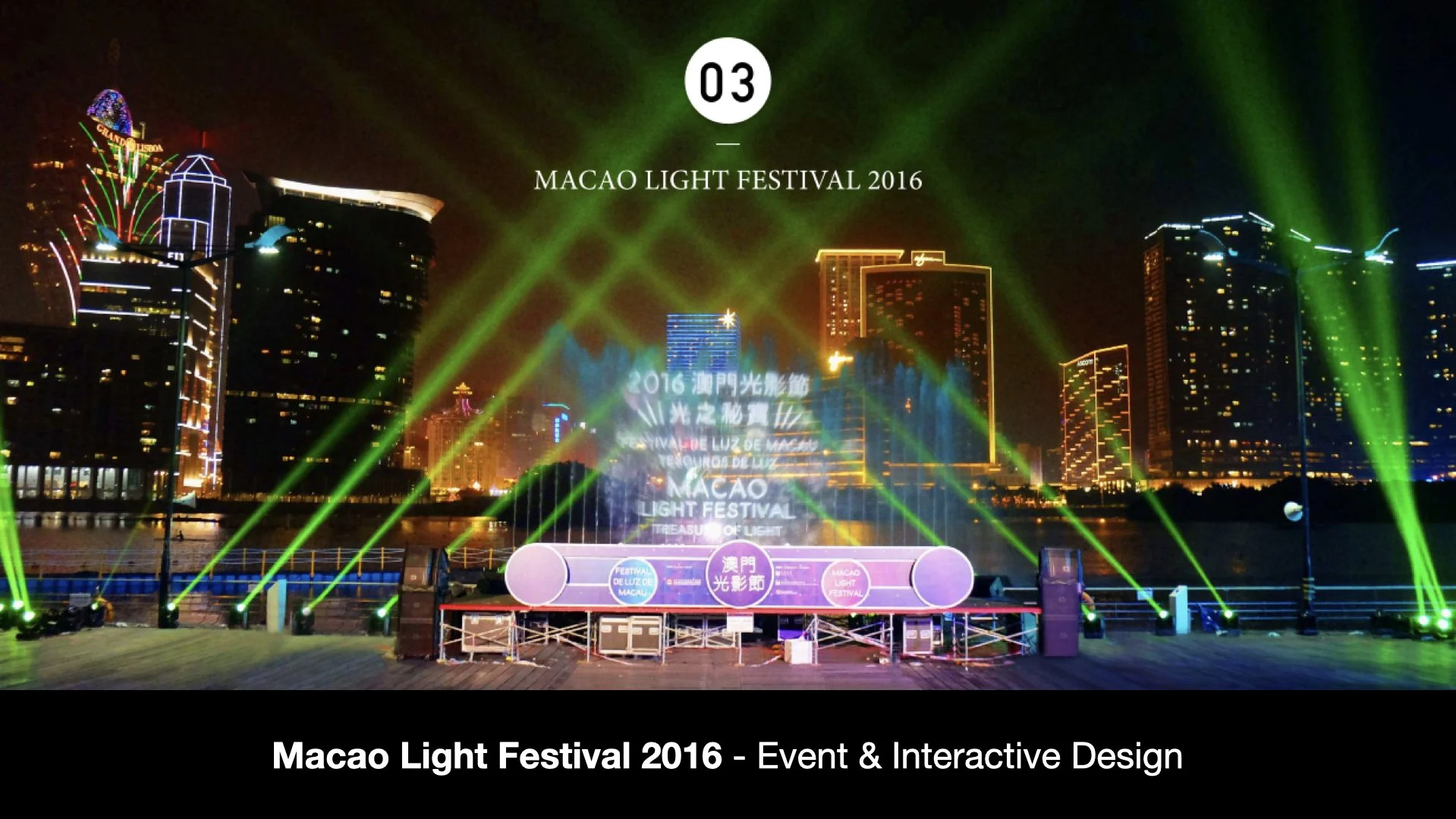 The clientele portfolio under my direction reflects a high caliber of excellence and innovation, including prestigious brands such as Audemars Piguet, Longines, Mont Blanc, and BMW. These collaborations underscore my ability to understand and execute high-profile projects that meet and exceed the expectations of discerning clients, setting new standards in the industry for live experiences that are not just seen and heard but felt deeply. My expertise extends to creative consultancy and curatorial projects for large-scale events. Noteworthy contributions include concept and multimedia design for the 2010 Shanghai Expo’s Hong Kong Smartcard Pavilion & Macao Tak Sing On pavilion, the One Piece Summer Carnival 2016 & One Piece Run Hong Kong 2016, the Macao Light Fest 2016, and the HELLO! MOON exhibition in Beijing's WaterCube in 2018.
