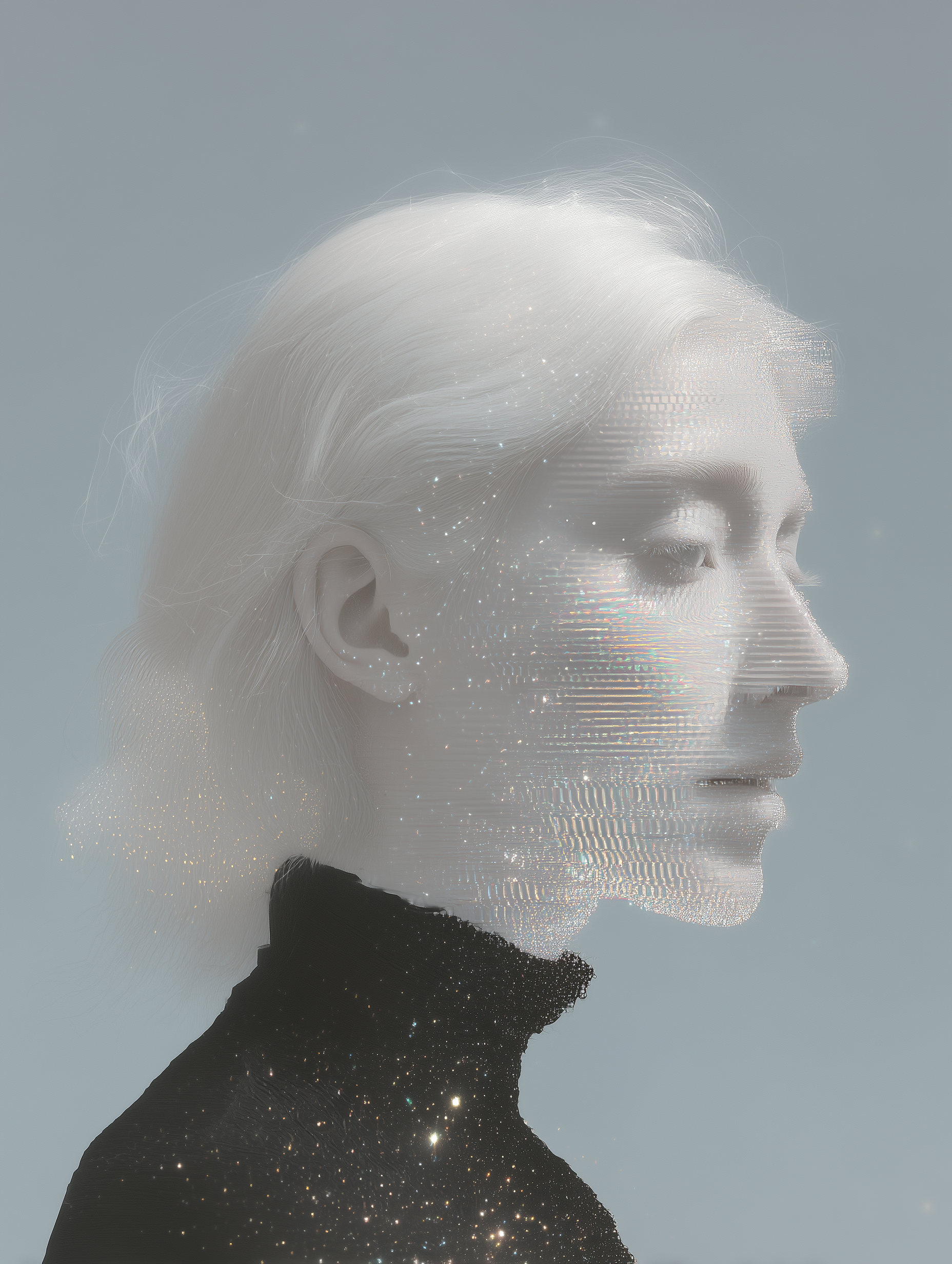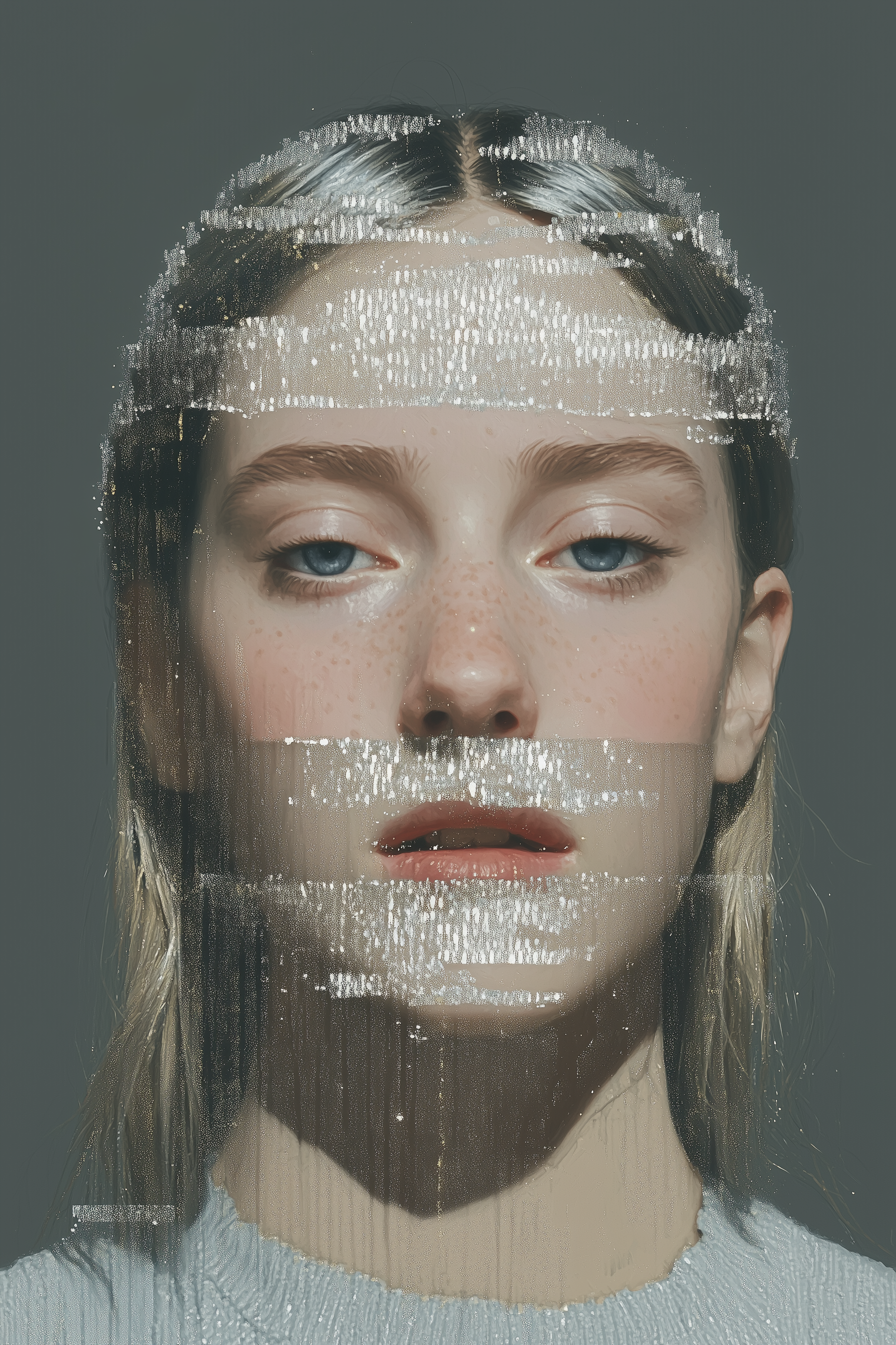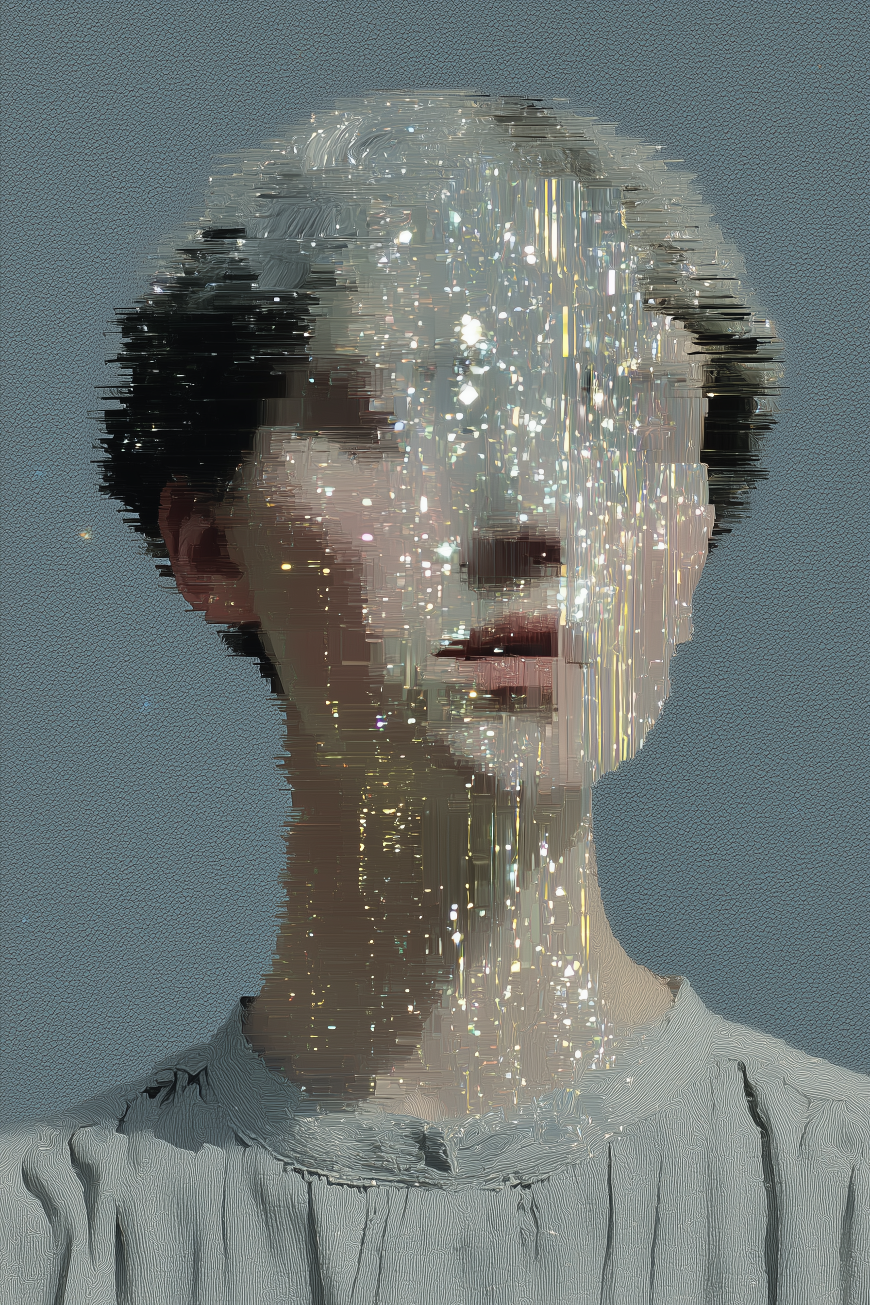Since early 2024, I’ve treated this series as a daily studio practice. Each day I return to a portrait framework—not to document a single subject, but to search for a new face of art in the AI age. The “subject” is both human and machine, and the portrait becomes a site where intent and interpretation collide.