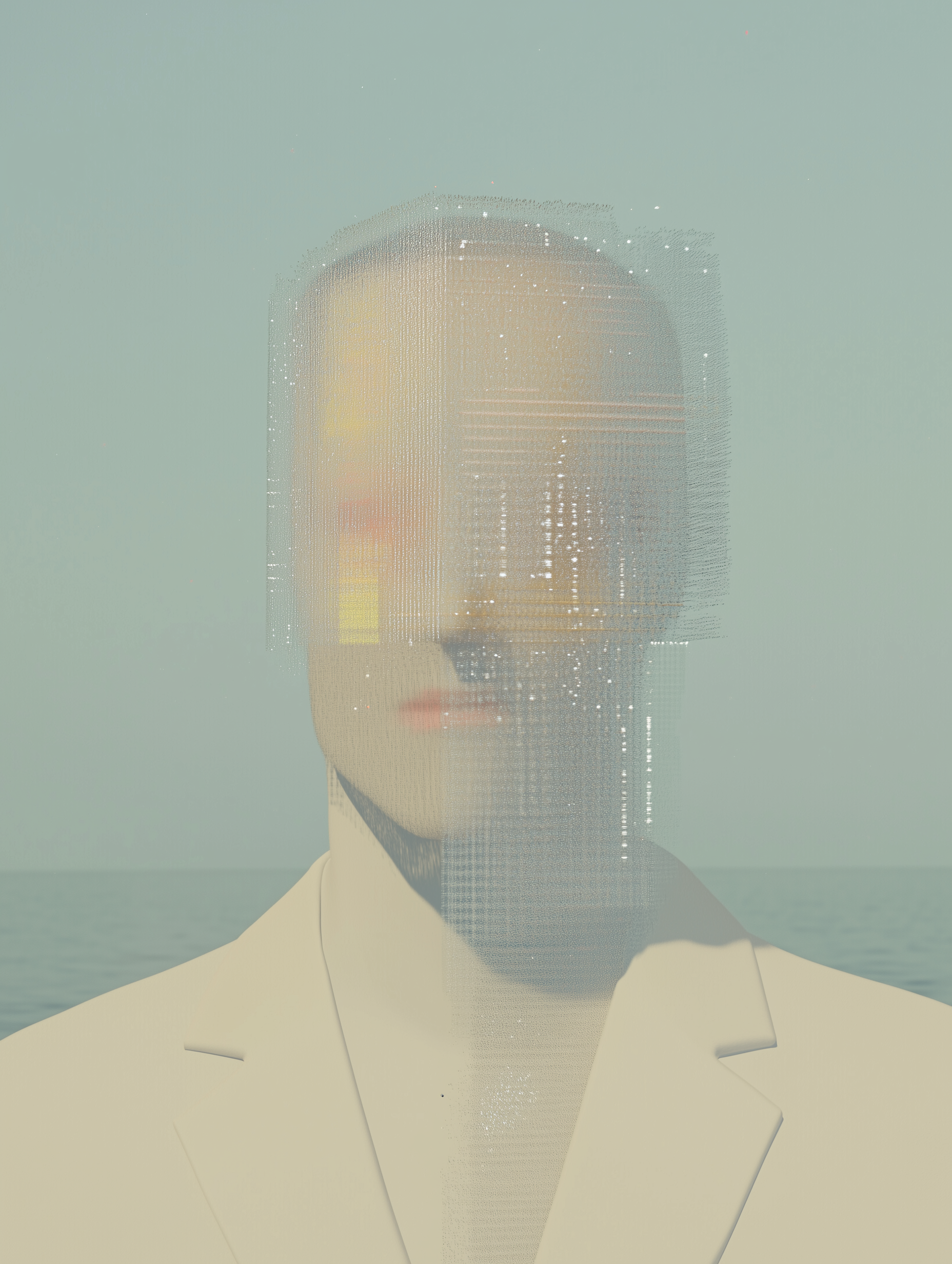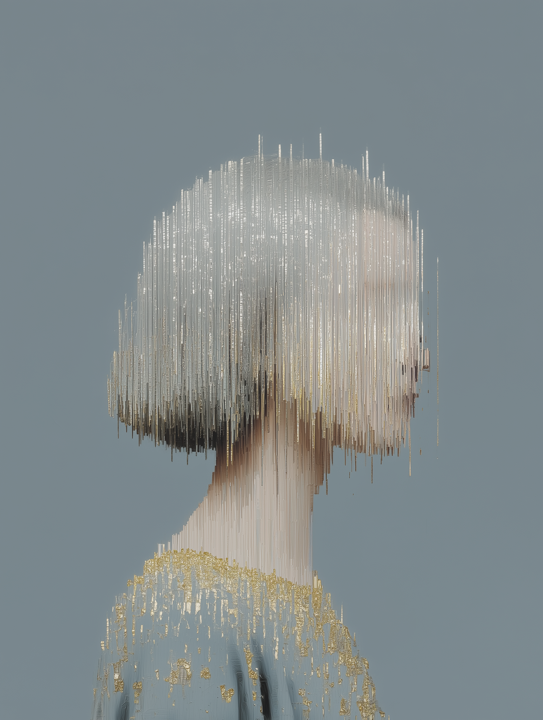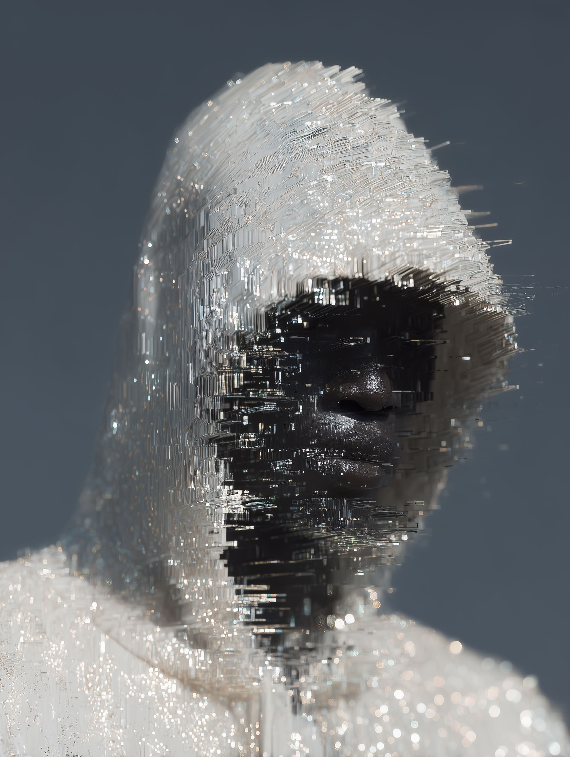 Since early 2024, I’ve treated this series as a daily studio practice. Each day I return to a portrait framework—not to document a single subject, but to search for a new face of art in the AI age. The “subject” is both human and machine, and the portrait becomes a site where intent and interpretation collide.