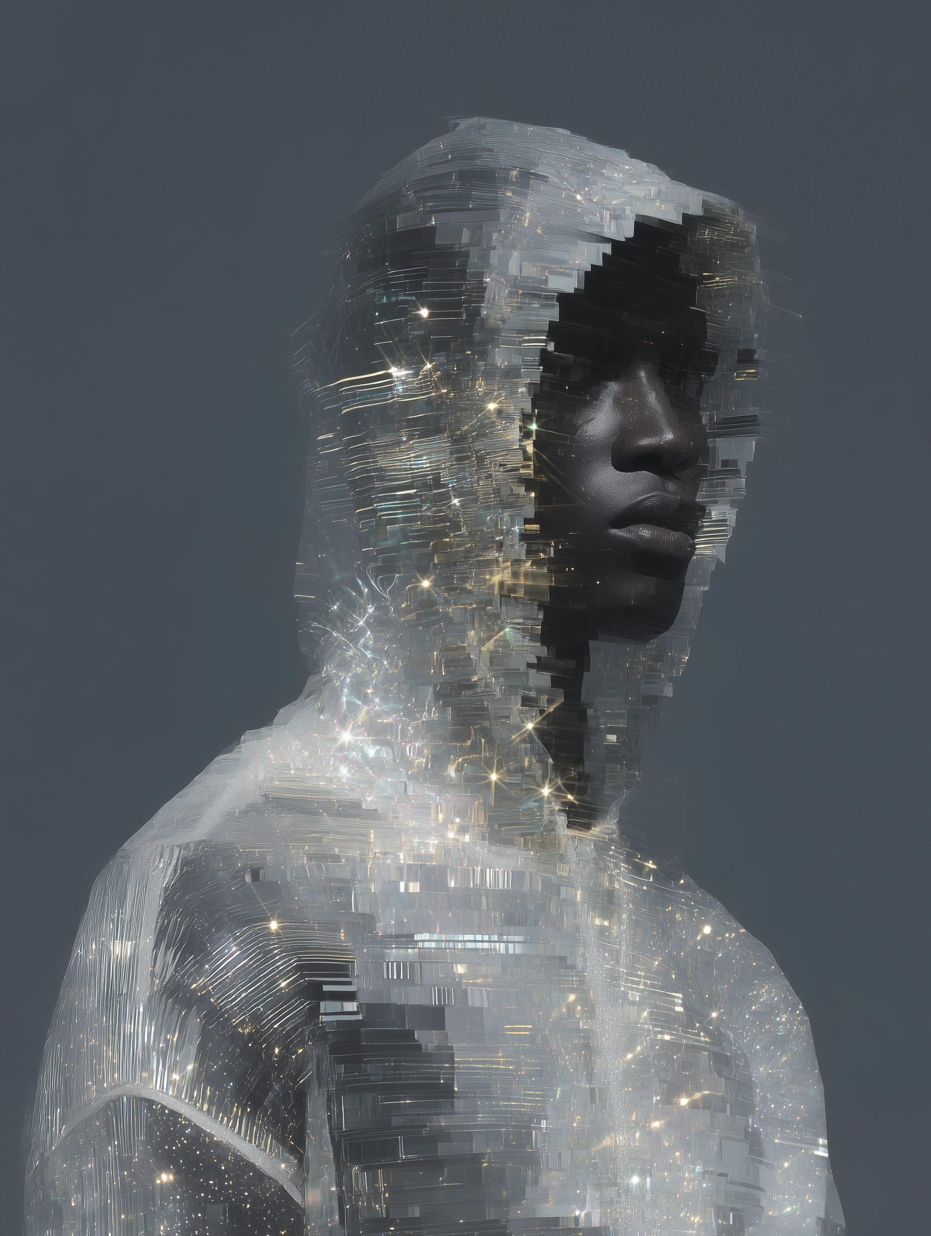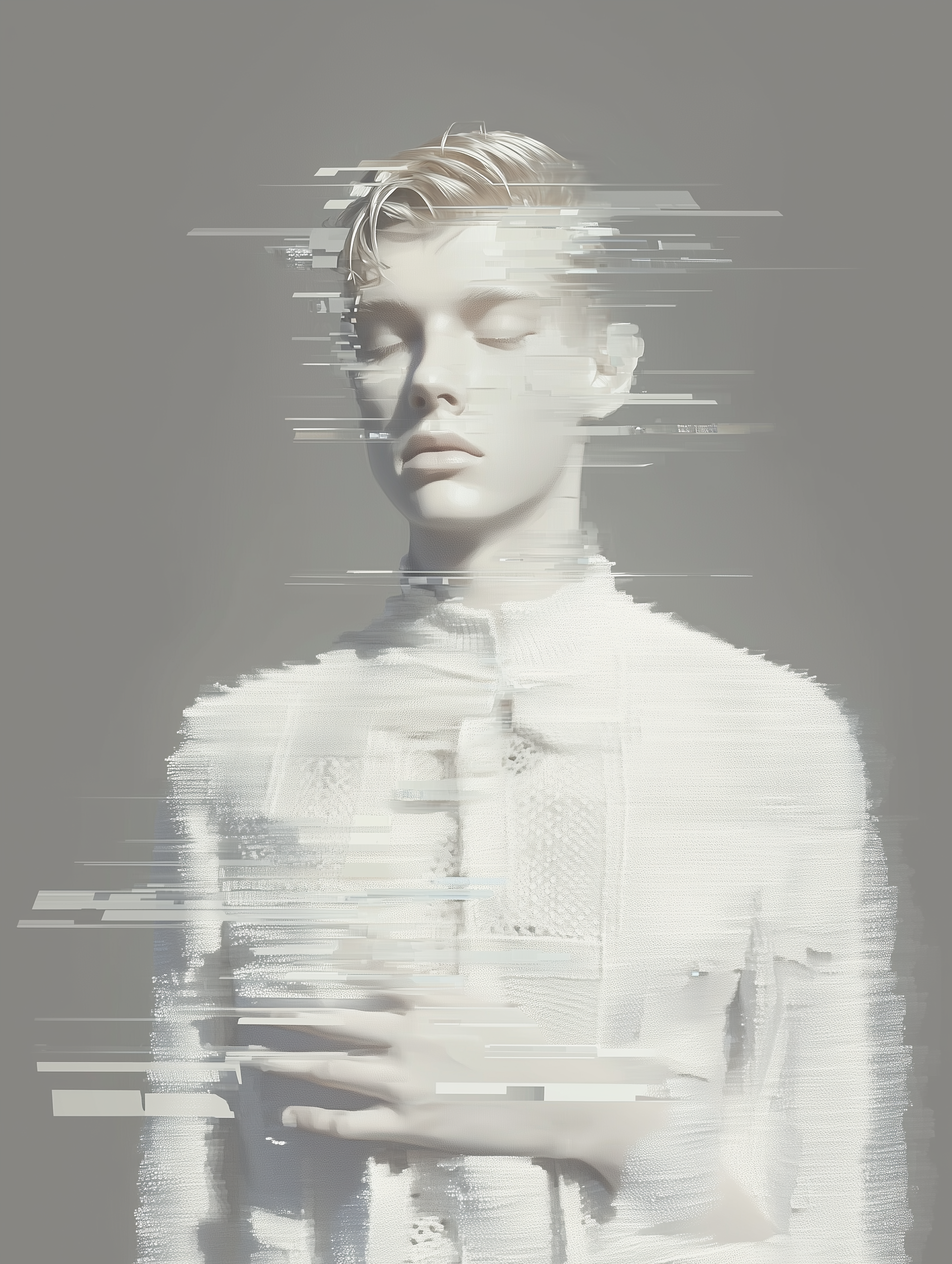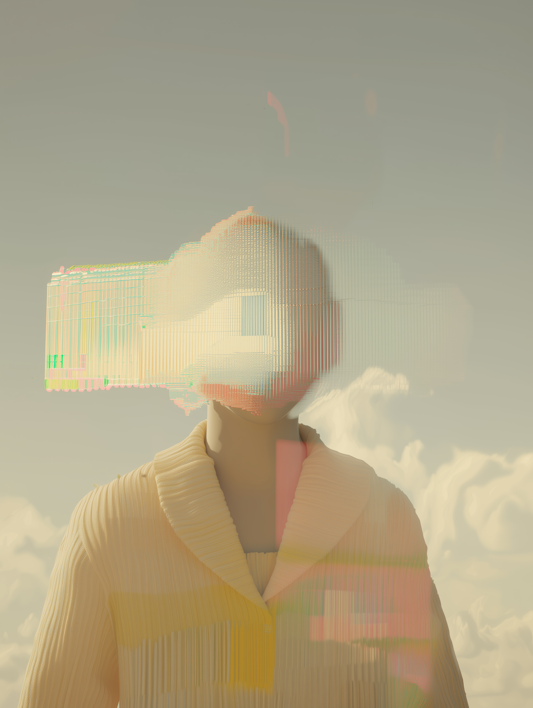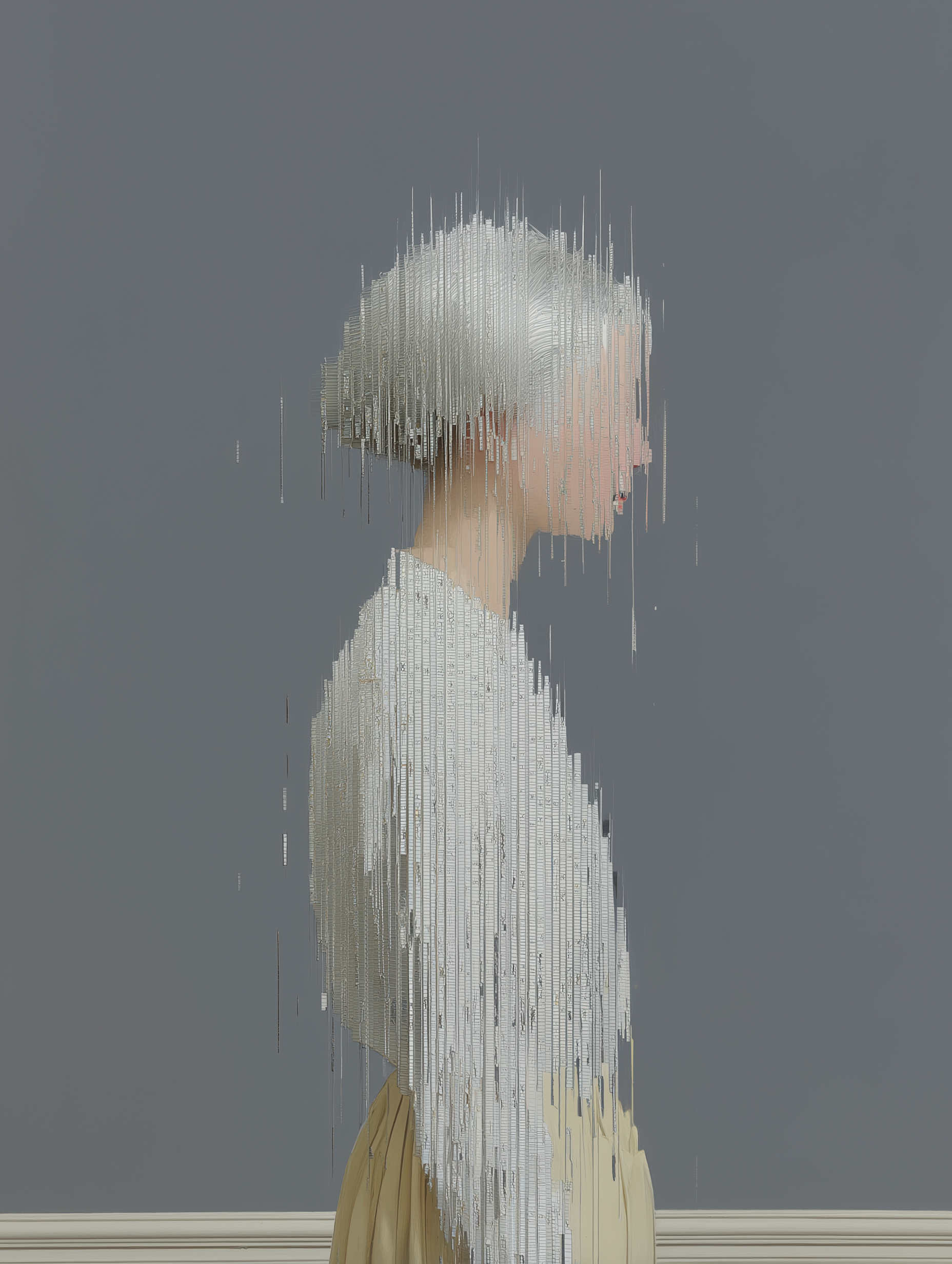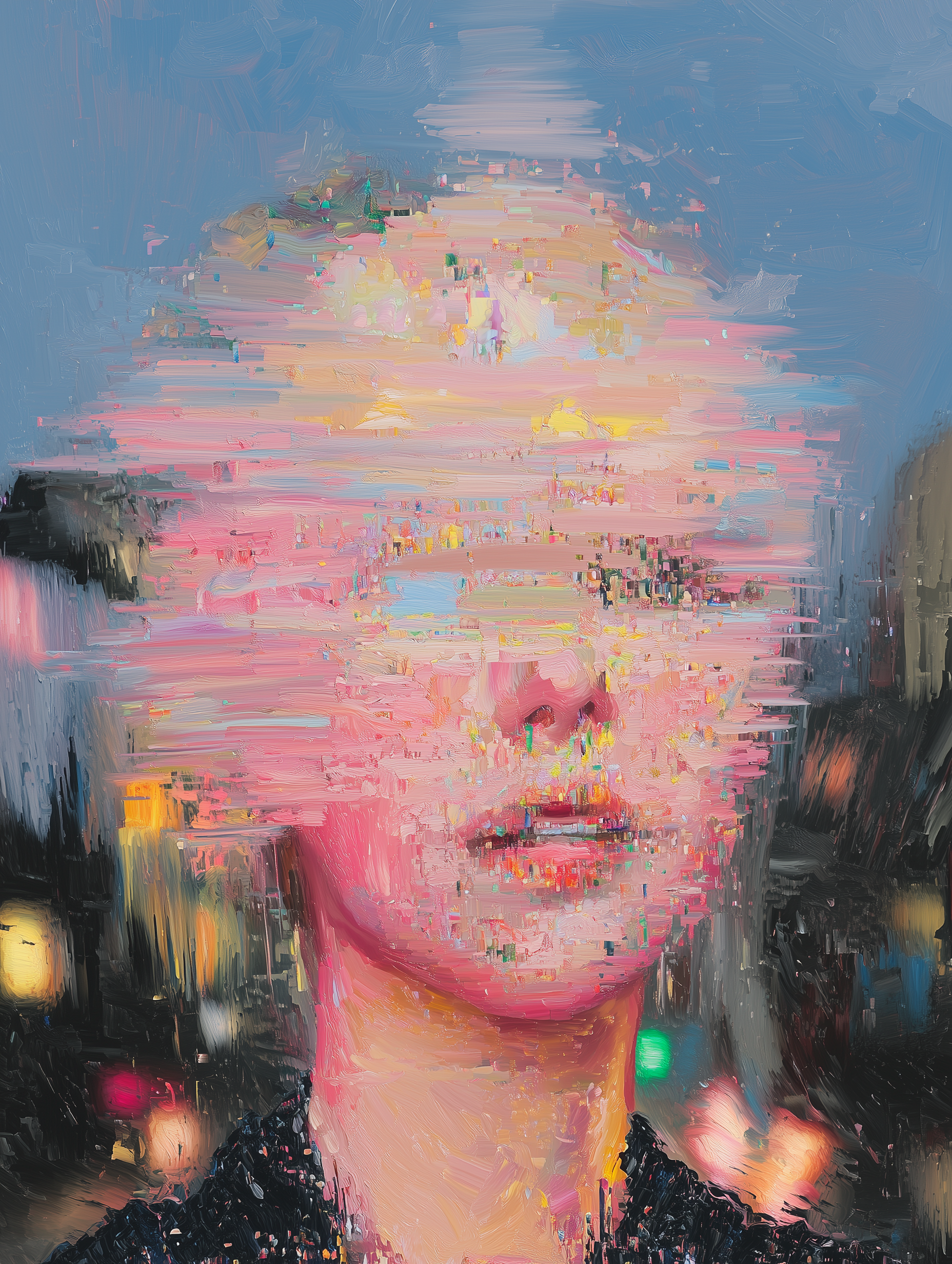 I’m drawn to glitches and prompt-induced errors. They introduce unexpected seams, misregistrations, and warped anatomies that behave like a new kind of texture—a digital pigment. What looks like a mistake often reads as feeling; these artifacts open pockets of meaning the same way brushstrokes once did. In this work, error isn’t a failure of the system; it’s my material.